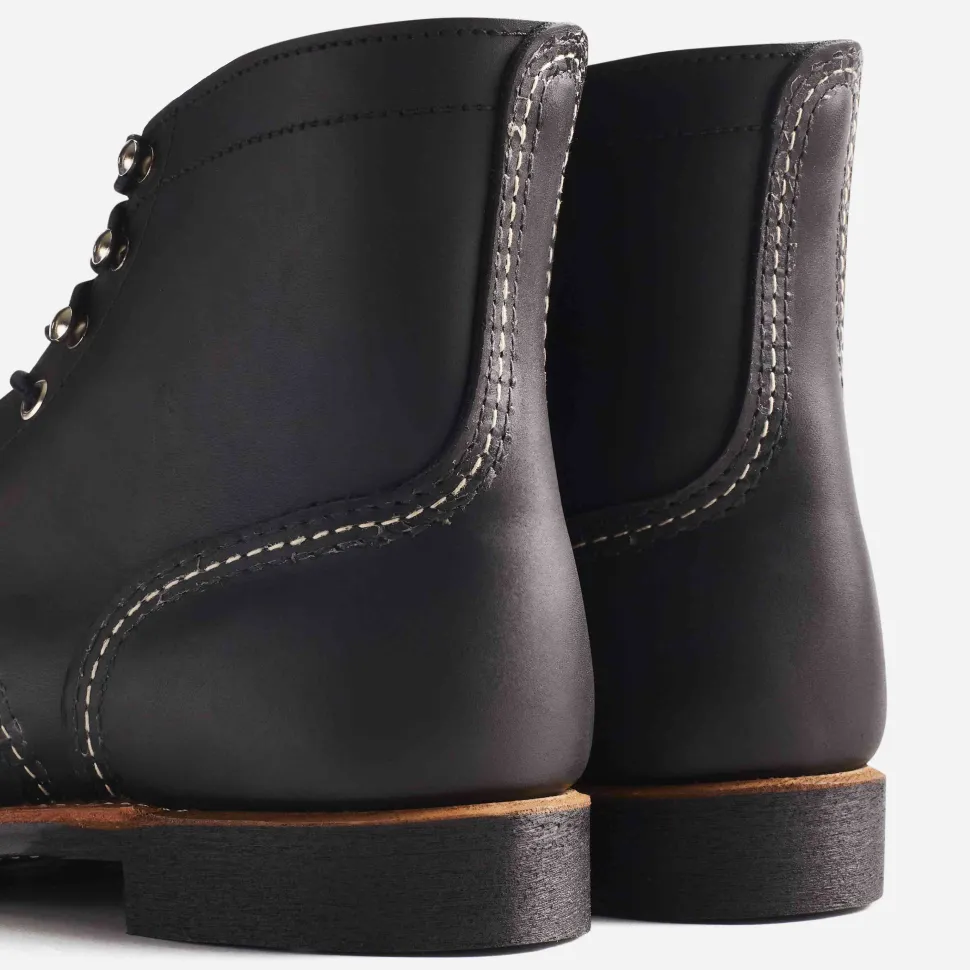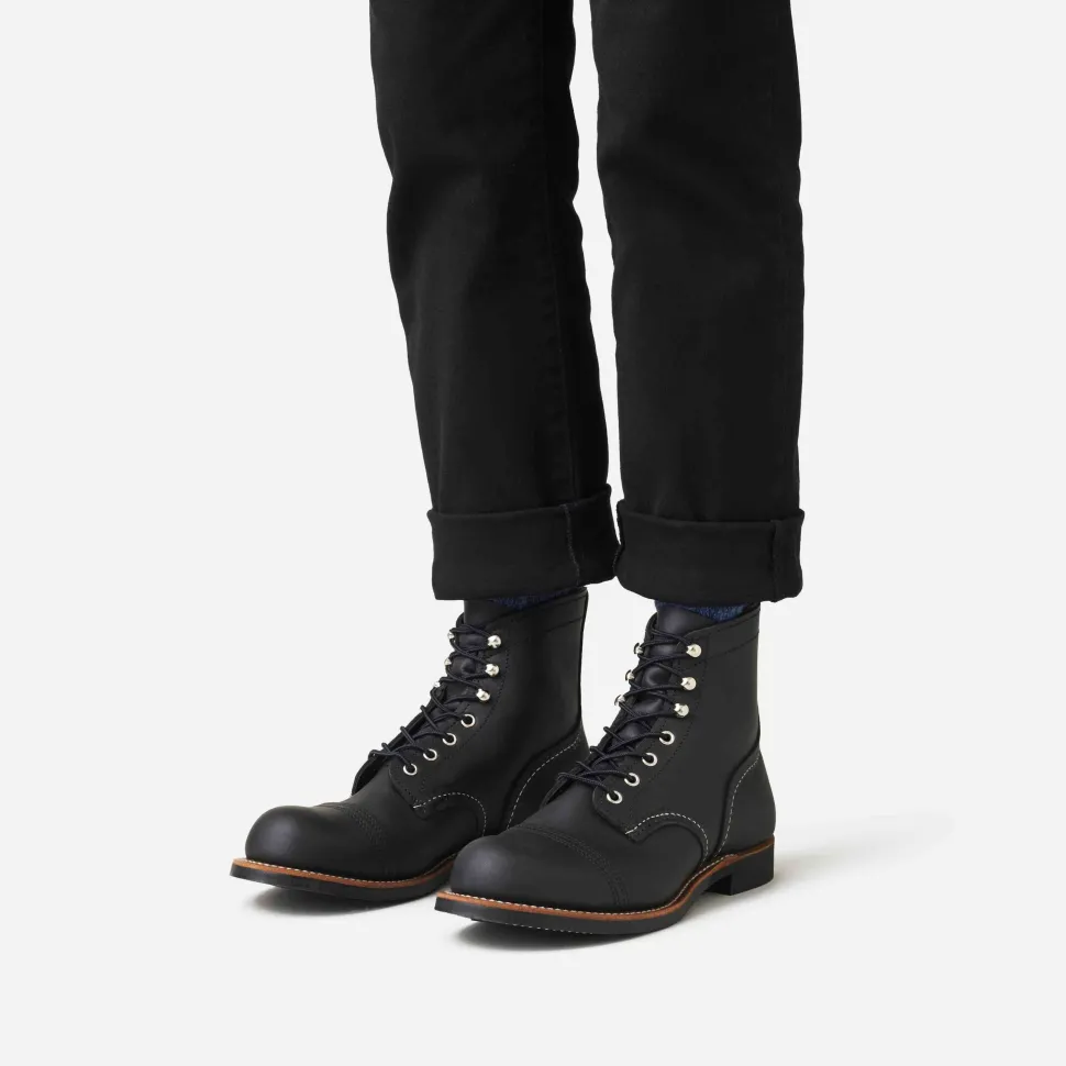 Der Iron Ranger ist einer der Kultschuhe der Red Wing Shoe Company und für seinen zeitlosen Stil und seine langlebige Konstruktion bekannt und beliebt. Ursprünglich für die Arbeit unter Tage entwickelt, ist er heutzutage für viele Männer zum täglichen Begleiter in jeglicher Situation geworden. Er passt einfach zu jeder Hose und Gelegenheit. Die Gerberei SB Foot Tanning Co. ist bekannt für das hier verwendete ölgegerbte Leder. Es ist wasser-, schmutz- und schweißbeständig. Es ist besonders langlebig und wirkt edel und natürlich. Ein neues Paar Red Wing Heritage Schuhe sollte bequem aber eng am Fuß anliegen und genügend Platz bieten, um die Zehen frei bewegen zu können. Im Laufe der Zeit passen sich das Leder-Obermaterial, das Lederfußbett und die Kork-Zwischensohle den Füßen an und sorgen mit jedem Tragen für eine dauerhafte und individuelle Passform.