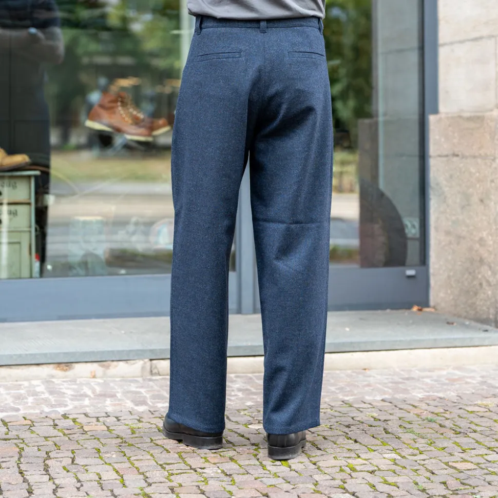 Carlo steht für entspanntes Tailoring mit Substanz. Die locker geschnittene Hose mit geradem Bein wird aus kardierter europäischer Lammwolle gefertigt und überzeugt durch ihre griffige, melierte Oberfläche – ideal für kühle Tage. Ein partielles Kniefutter aus 100 % Baumwolle erhöht den Tragekomfort und sorgt für mehr Struktur. Mit zwei Seiten- und zwei Gesäßtaschen, einem hochwertigen Reißverschluss mit Tack-Knopf aus deutscher Produktion, maschinenwaschbar im Wollprogramm und fair gefertigt in Litauen – Carlo ist ein vielseitiger Begleiter für Alltag oder Anzugkombination.