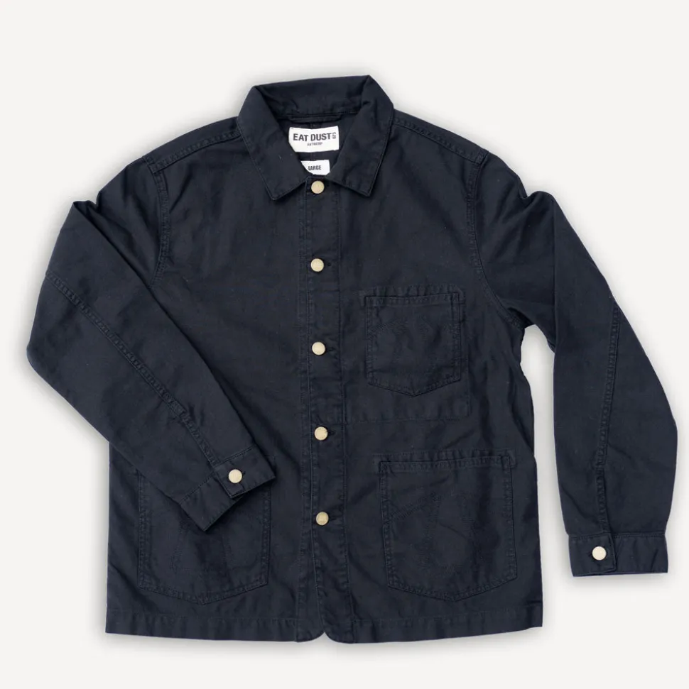 Aktualisierte Version der klassischen Eat Dust 673 Chore Jacket im Stil klassischer Arbeitskleidung, aber hier mit einem modernen Touch. Sie hat einen einfachen, unkomplizierter Stil, den man jederzeit tragen kann. Die Passform ist normal mit 2 Vordertaschen am der Hüfte und einer Brusttasche mit farblich abgestimmten Z-Bar-Nähten.