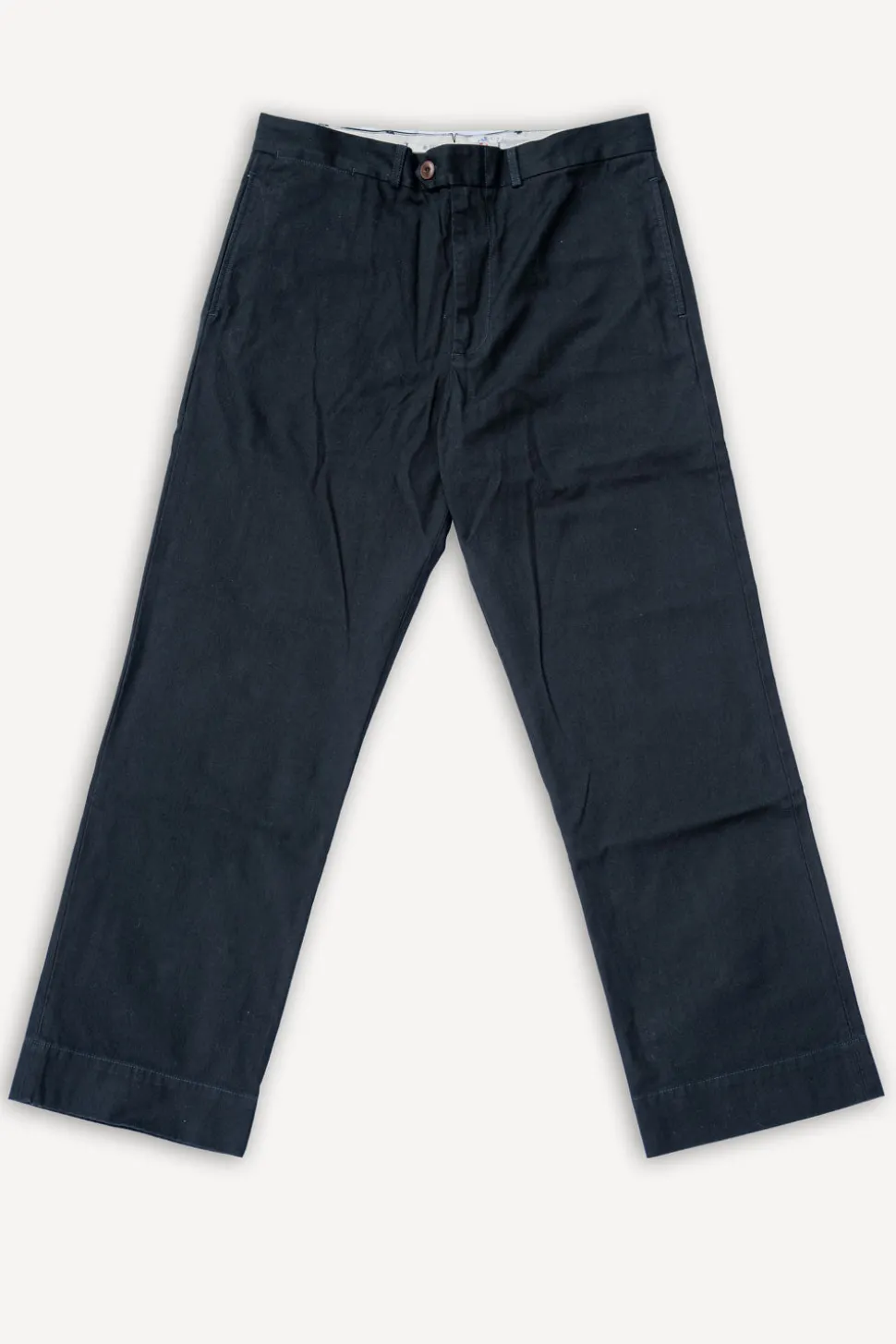 Diese hoch taillierte Hose mit entspannter Passform und geradem Beinschnitt verbindet Komfort mit zeitlosem Stil. Sie verfügt über einen Reißverschluss mit Knopfverschluss, seitliche Taschen, eine Münztasche rechts an der Hüfte und zwei geknöpfte Gesäßtaschen für praktische Funktionalität. Abgerundet wird die Hose durch Corozo-Knöpfe und ein Innenfutter aus Baumwolle im Fischgrätmuster am Bund und an den Taschen.