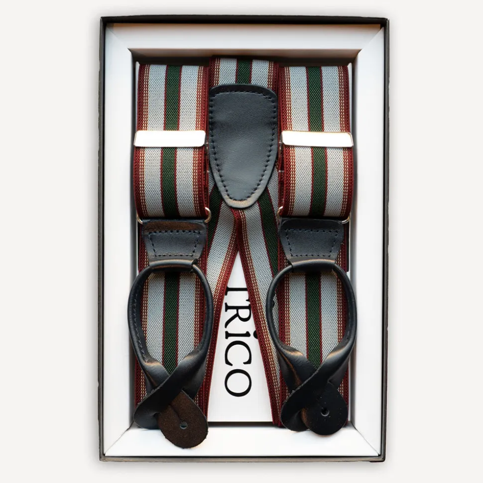 Hosenträger 36mm breit mit Rollzug Grün/Beige/Rot gestreift