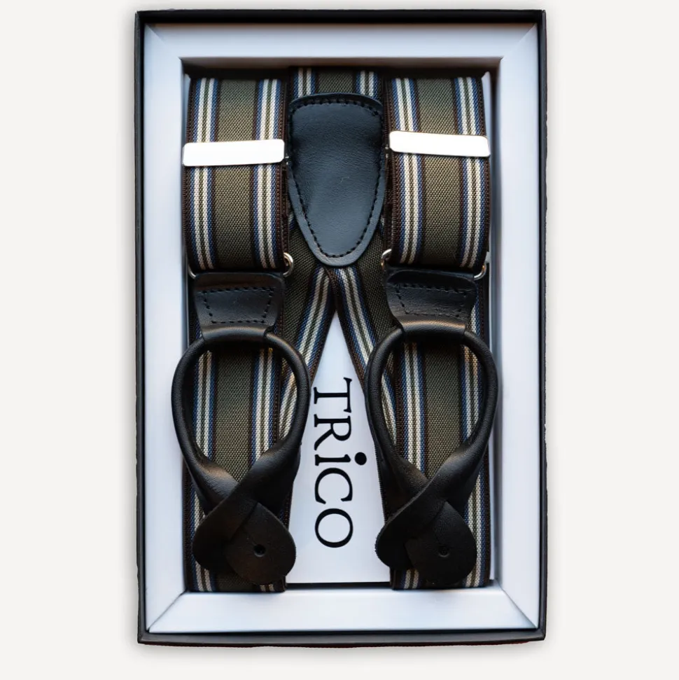 Hosenträger 36mm breit mit Rollzug Olivgrün gestreift