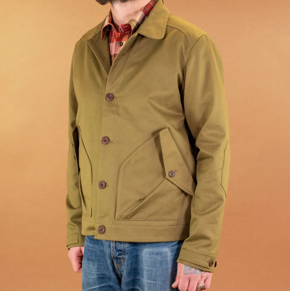 Die Pollux ’57 ist die Vintagestyle Version der ungefütterten Herren Jacke von Hidden Aces mit zwei Doppeltaschen auf der Vorderseite und Verstellspangen an Rückseite und Ärmeln. Die Jacke hat betont schmale Ärmel und Ärmelflecken. Obermaterial ist ein wasserabweisend imprägnierter Herringbone von British Millerain. Weitere Highlights sind die Golffalten im Rücken und das tolle Vintage-Stripe-Futter.