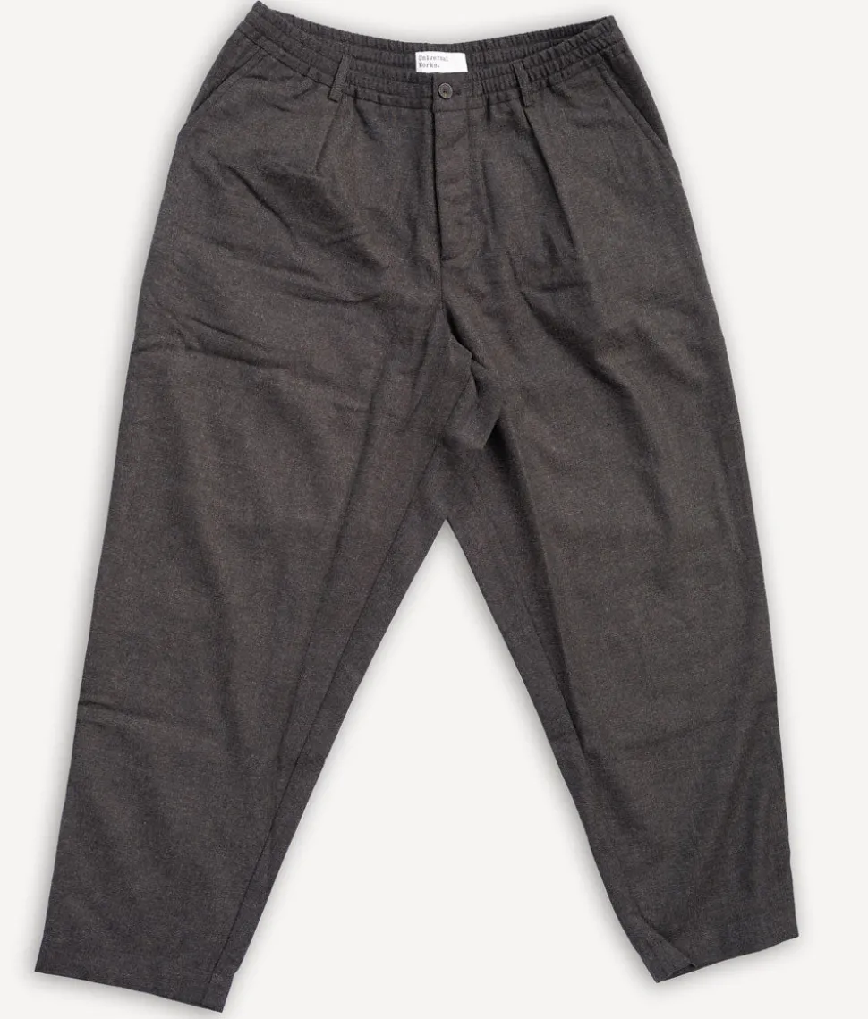 Die Track Pant von Universal Works ist eine lockere, schmal zulaufende Hose mit einer einzelnen Bundlfalte vorne. Für die perfekte Passform hat Universal Works einen Kordelzug in der Taille hinzugefügt. Der Stoff ist ein leichter, dezenter Fischgrät-Tweed, hergestellt in Italien aus recycelten Wollgarnen und Baumwolle. Aufgrund seiner Vielseitigkeit ein beliebter Winterstoff.