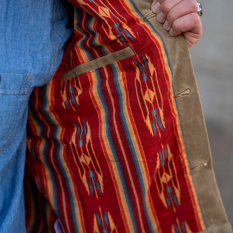 Das Riders Jacket, kurz RJ-1, war eine der ersten Jacken, die Freenote entworfen haben. Es ist eine einzigartige Mischung aus einer klassischen Ranchjacke kombiniert mit einer Reitjacke. Die vorderen Falten dehnen sich bei Bewegung aus, ebenso wie die Schulterzwickel im Rücken. Zu den Konstruktionshighlights gehören 1/8-Zoll-Nahtdetails und maßgeschneiderte Metallbeschläge, die exklusiv für Freenote Cloth hergestellt werden. Der RJ-1 ist mit der charakteristischen Rückseite für zusätzliche Bewegungsfreiheit entworfen. Versteckte Gummibänder im Inneren der Jacke sorgen dafür, dass die Schulterzwickel an Ort und Stelle bleiben und sorgen für Bewegungsfreiheit in diesem schweren Teil. Darüber hinaus sind die Ärmel mit einer Baumwoll-Viskose-Mischung gefüttert, um das An- und Ausziehen der Jacke zu erleichtern.