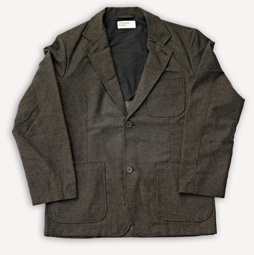 Eine moderne, locker geschnittene Jacke mit zwei Knöpfen, leicht taillierter Passform und längerem, breiterem Revers..