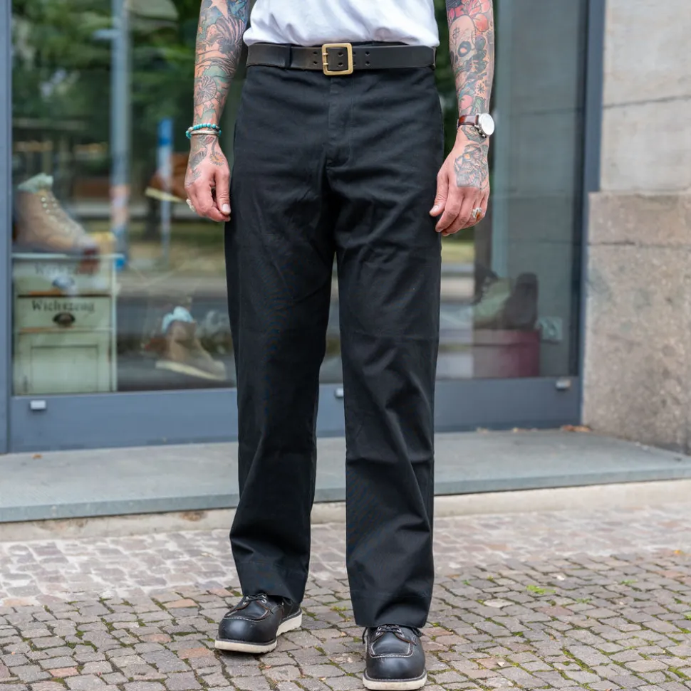 Diese hoch taillierte Hose mit entspannter Passform und geradem Beinschnitt verbindet Komfort mit zeitlosem Stil. Sie verfügt über einen Reißverschluss mit Knopfverschluss, seitliche Taschen, eine Münztasche rechts an der Hüfte und zwei geknöpfte Gesäßtaschen für praktische Funktionalität. Abgerundet wird die Hose durch Corozo-Knöpfe und ein Innenfutter aus Baumwolle im Fischgrätmuster am Bund und an den Taschen.