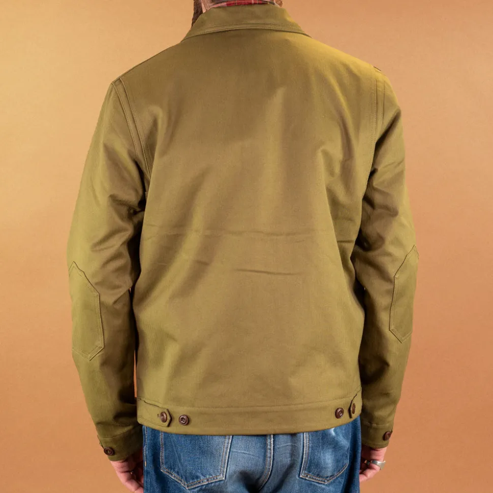 Die Pollux ’57 ist die Vintagestyle Version der ungefütterten Herren Jacke von Hidden Aces mit zwei Doppeltaschen auf der Vorderseite und Verstellspangen an Rückseite und Ärmeln. Die Jacke hat betont schmale Ärmel und Ärmelflecken. Obermaterial ist ein wasserabweisend imprägnierter Herringbone von British Millerain. Weitere Highlights sind die Golffalten im Rücken und das tolle Vintage-Stripe-Futter.