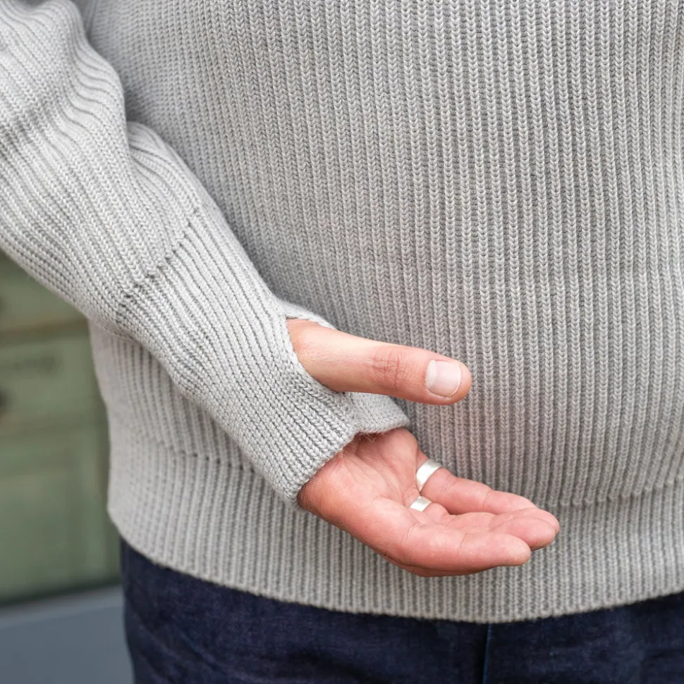 Pullover mit halbem Reißverschluss, gestrickt im Cardigan-Vollstich. Das Modell hat eine reguläre Passform mit hohem Kragen und verlängerten Ärmelbündchen mit Daumenlöchern. Modisch gestrickt und verkettet. Alle Baugruppen sind mit Riegeln verstärkt. Kommt mit einem nickelfreien YKK-Reißverschluss. Gestrickt auf einer 5-Gauge-Flachstrickmaschine mit 6 Fäden extra gesponnener, reiner Schurwolle für eine schwere und langlebige Qualität.