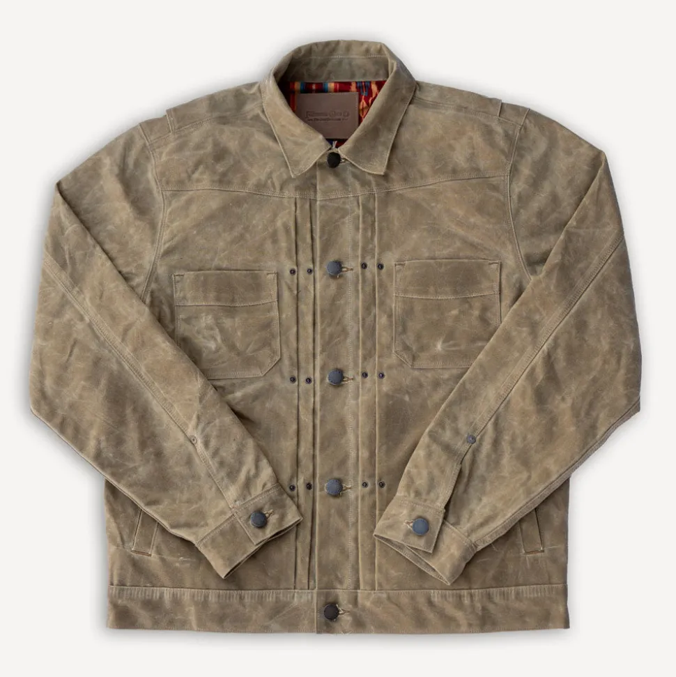Das Riders Jacket, kurz RJ-1, war eine der ersten Jacken, die Freenote entworfen haben. Es ist eine einzigartige Mischung aus einer klassischen Ranchjacke kombiniert mit einer Reitjacke. Die vorderen Falten dehnen sich bei Bewegung aus, ebenso wie die Schulterzwickel im Rücken. Zu den Konstruktionshighlights gehören 1/8-Zoll-Nahtdetails und maßgeschneiderte Metallbeschläge, die exklusiv für Freenote Cloth hergestellt werden. Der RJ-1 ist mit der charakteristischen Rückseite für zusätzliche Bewegungsfreiheit entworfen. Versteckte Gummibänder im Inneren der Jacke sorgen dafür, dass die Schulterzwickel an Ort und Stelle bleiben und sorgen für Bewegungsfreiheit in diesem schweren Teil. Darüber hinaus sind die Ärmel mit einer Baumwoll-Viskose-Mischung gefüttert, um das An- und Ausziehen der Jacke zu erleichtern.