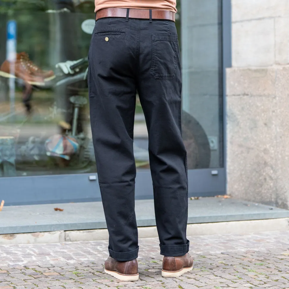 Ein echter Klassiker der Eat Dust Herrenkollektion. Die Service-Chino wurde aus einem erstklassigen Baumwollstoff hergestellt und ist so geschnitten, dass sie so bequem wie möglich sitzt: normaler Bund, mit leicht schmal zulaufenden Beinen. Abgerundet mit 2 verschiedenen Gesäßtaschen und farblich abgestimmten Nähten.