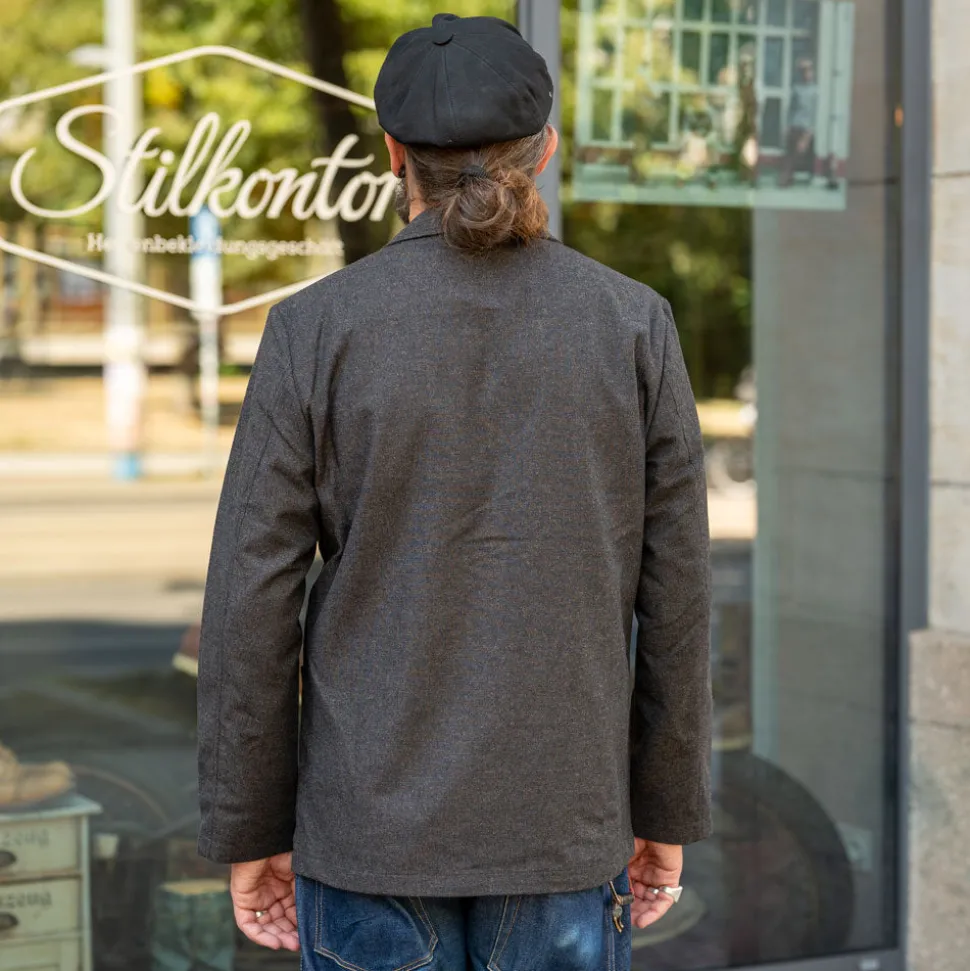 Eine moderne, locker geschnittene Jacke mit zwei Knöpfen, leicht taillierter Passform und längerem, breiterem Revers..